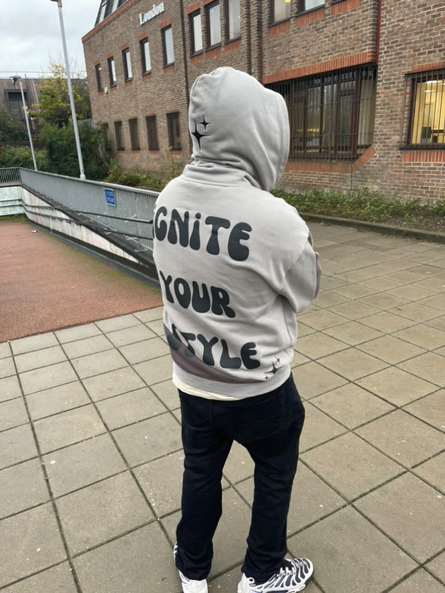 Dark Grey and Light Grey Puff Print Ignite Your Style Hoodie